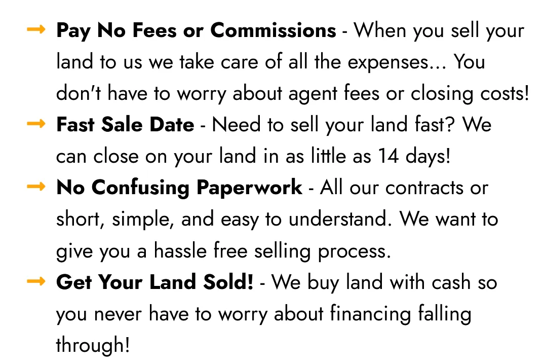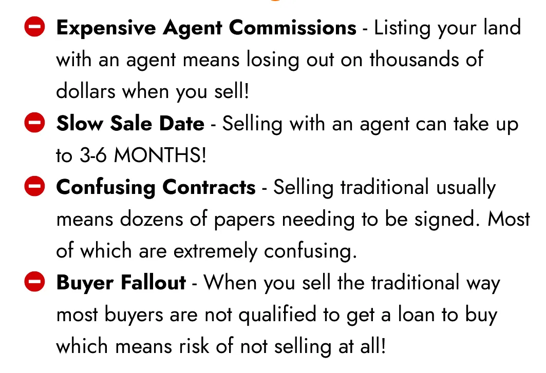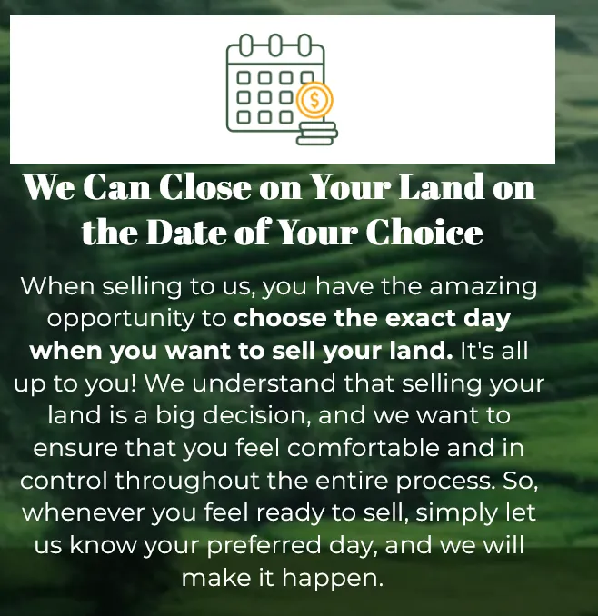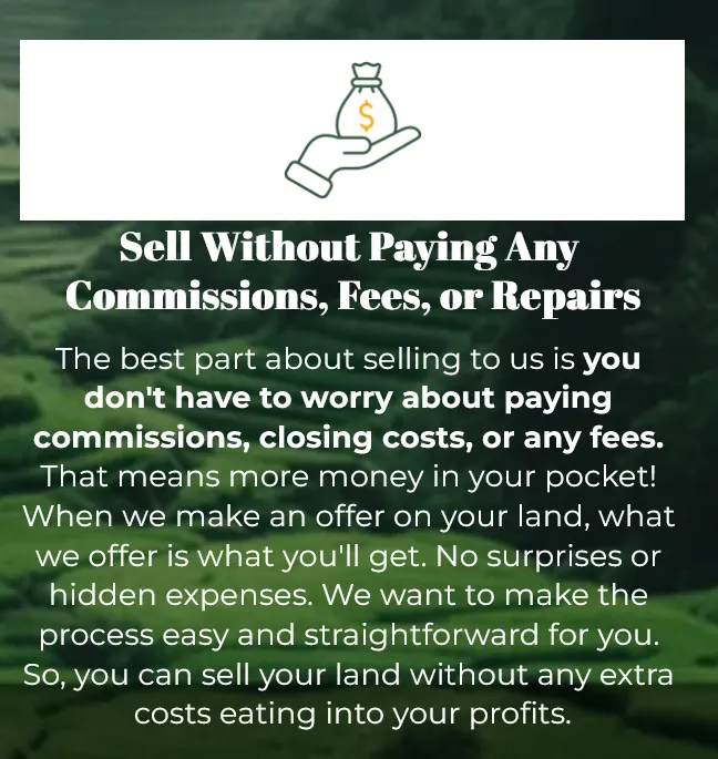 But that's not all! We truly care about our customers and our community. We want to make a positive impact on the neighborhoods we serve. By buying land directly from land owners, we help them avoid expensive commissions, closing costs, fees, and repair costs. That means more money in your pocket! We believe in fairness and transparency, and we want to make selling your land a stress-free experience.